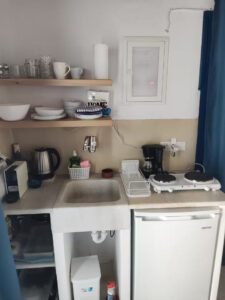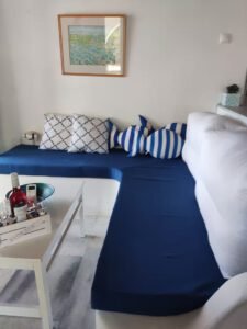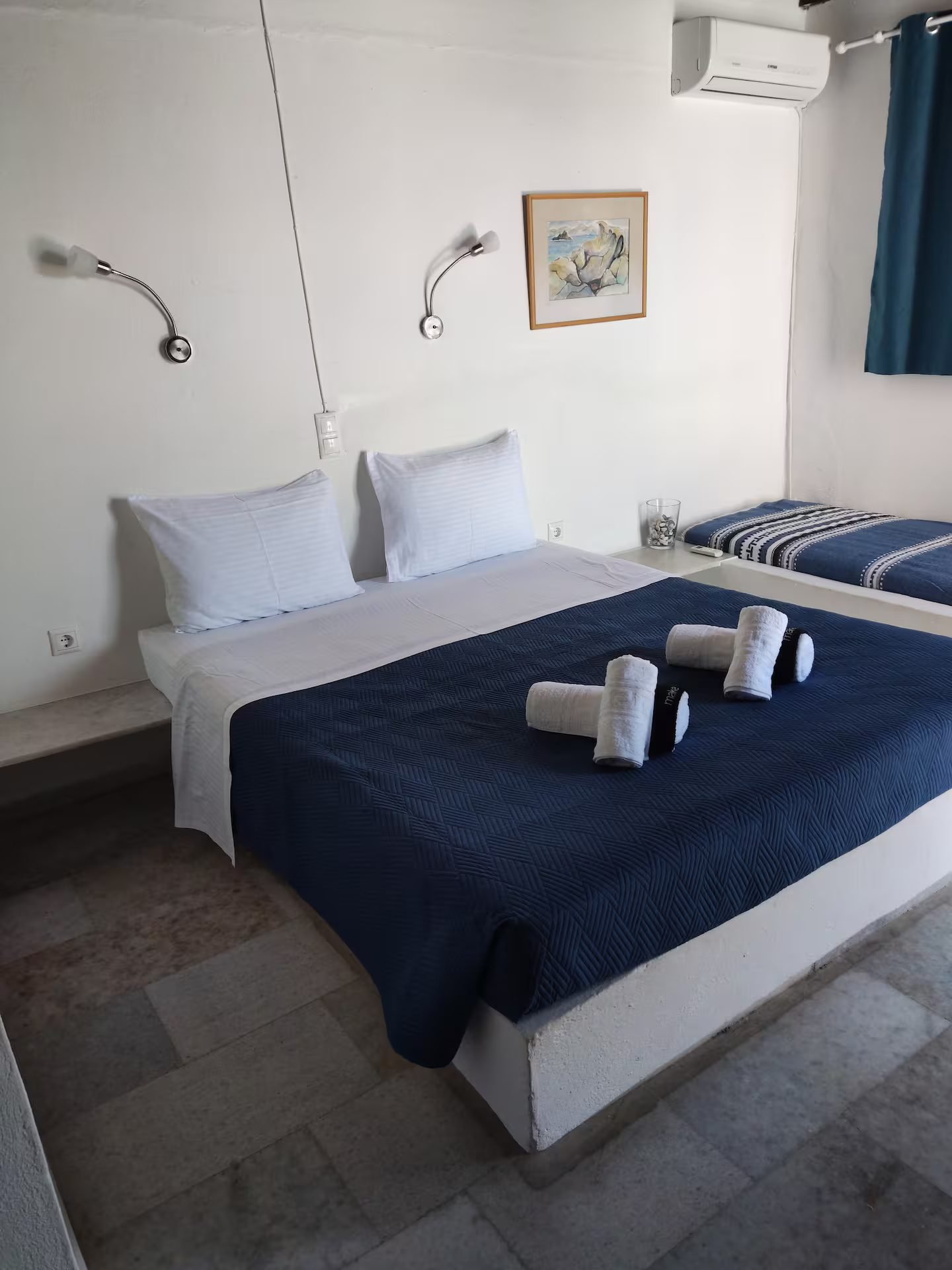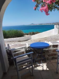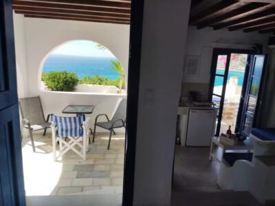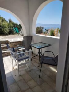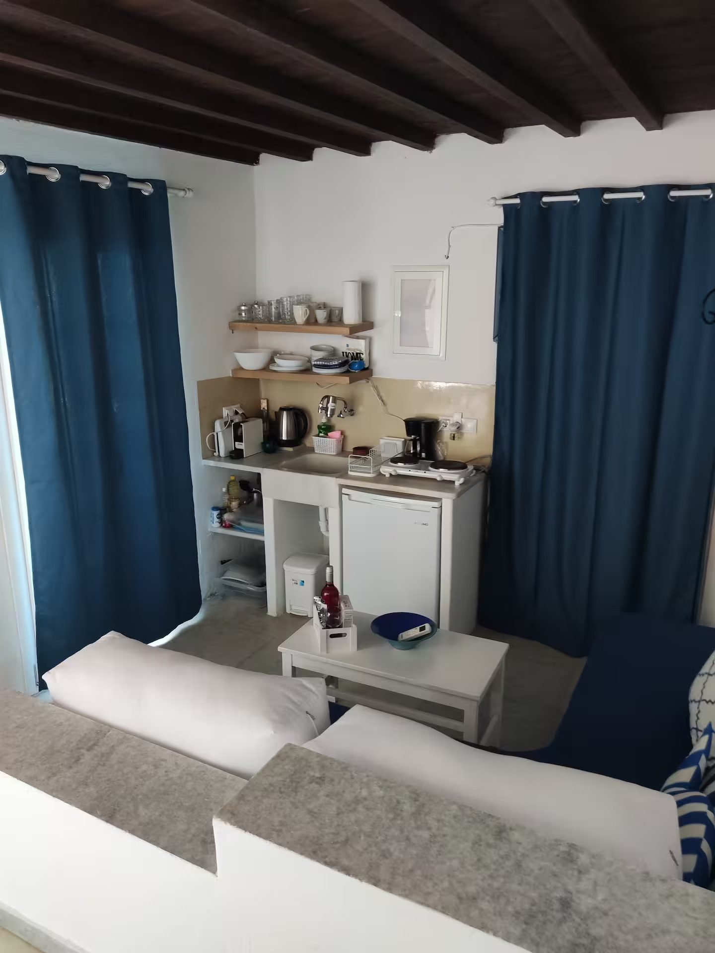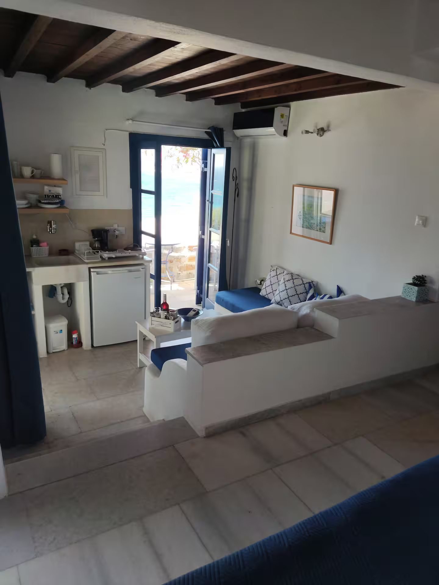 Orkos blue waves 4 is a traditional studio located at Orkos on the island of Naxos. It has 2 private balconies with an amazing unobstructed view of the Aegean sea. Spacious for up to 3 guests with all the amenities you need. The studio has a queen bed, a single bed and extremely fast internet. It has a fully equipped kitchenette with a small fridge. There is private free parking. The most beautiful beaches of Naxos like Orkos, Plaka and Mikri Vigla are 200m away. Mikri Vigla is ideal for windsurfing and kitesurfing. The location is ideal for walking and running. In Mikri Vigla which is a 1km distance from the distance there are restaurants, coffee shops, mini markets and bakeries.