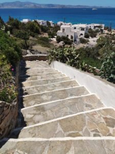 There is a wide stairway leading to the studio consisting of around 40 wide stairs so it is not ideal for guests with mobility issues. The studio is located 15 minutes drive away from the port and 10 minutes from the airport, so we strongly recommend to rent a vehicle.